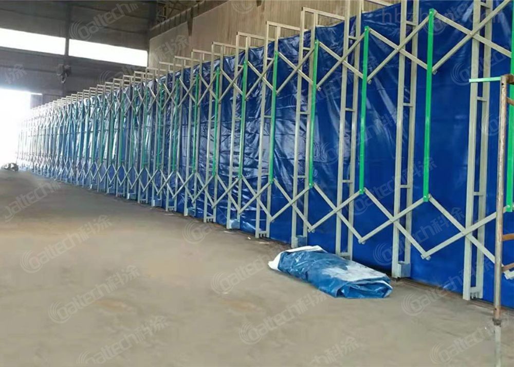 La cabina retrattile CoatTech è la soluzione di risparmio di spazio per pezzi di grande dimensione, pesanti o di forma scomoda, progettata con un telaio mobile e tende in PVC.la cabina si estende per racchiudere il prodotto per la verniciatura e si ritira20% della sua lunghezzaquando non sono in uso, permettendo alle gru aeree di trasportare carichi pesanti direttamente nell'area di lavoro.
