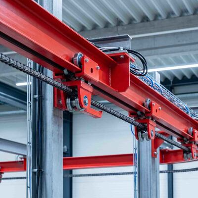 2. Elevare la finitura di componenti pesanti con il nostro sistema di monorotaia e essiccazione ad alta capacità